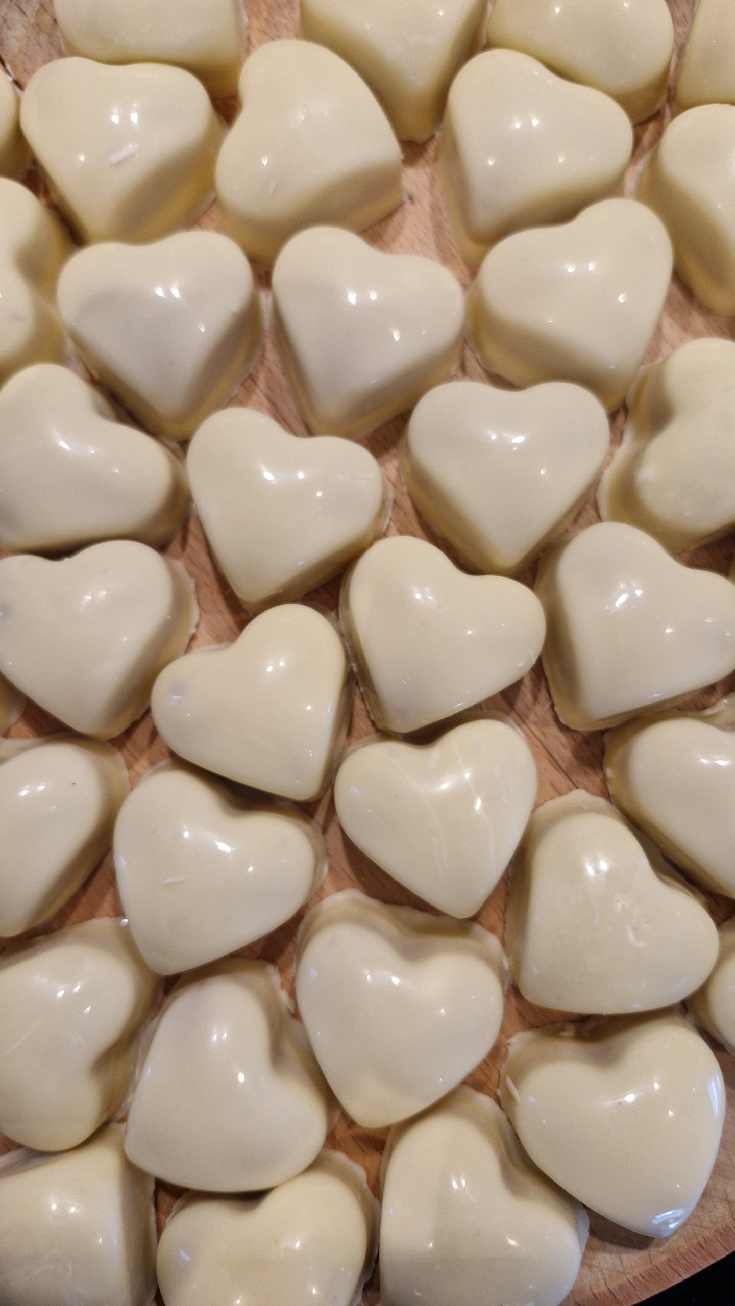 10 stk praliner hvit sjokolade 26,5%, med hockeypulverfyll.
