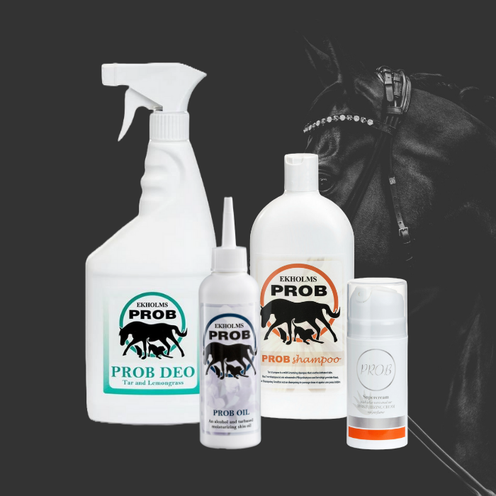 Prob deo tjære og sitrongress er en fluespray for hester og andre dyr, klar til bruk. Gir komfort for hest og rytter.